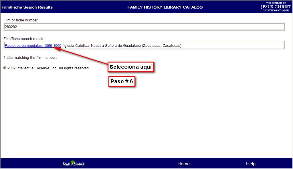 Log in or register to post comments <Return to Acidfree Albums> <Return to FamilySearch Fotos>Como ver el contenido de la parroquias con un numero de Film 6<Prev> <Next> Image Paso # 6, Step 6